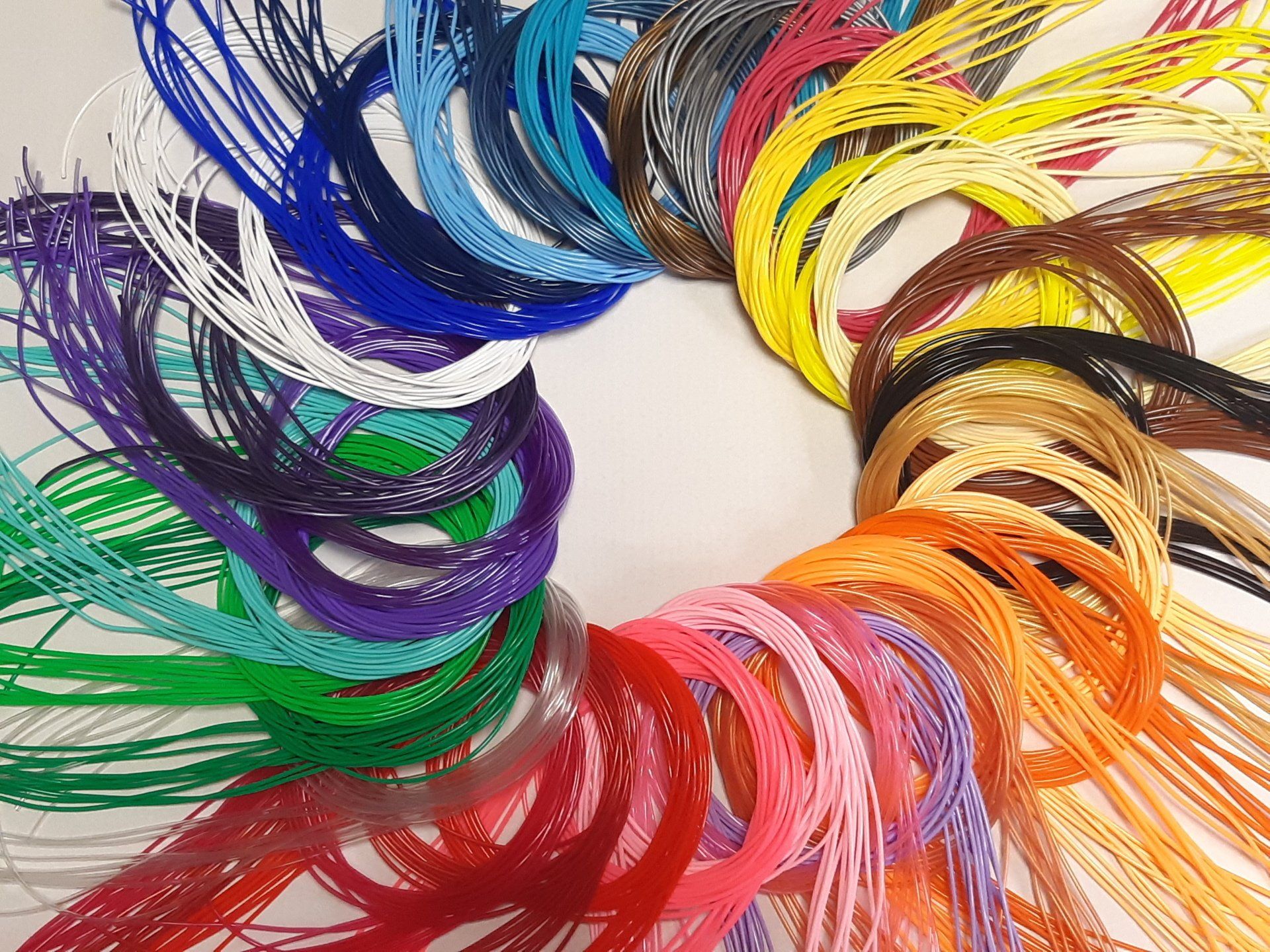 Les fils de scoubidou ou fils plastiques creux de 4mm de diamètre sont vendus à l'unité mesurant environ 2 mètres de long.